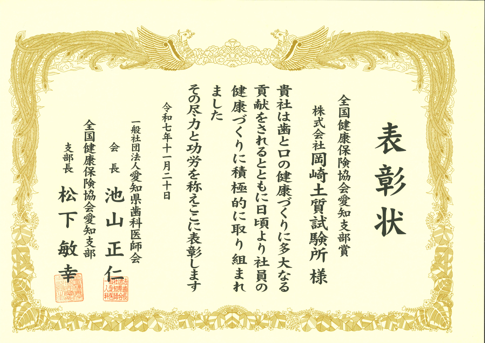 このたび、当社は「令和7年度 ウエルネス8020特別表彰」(愛知県歯科医師会・全国健康保険協会愛知支部)において、